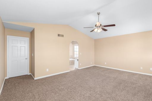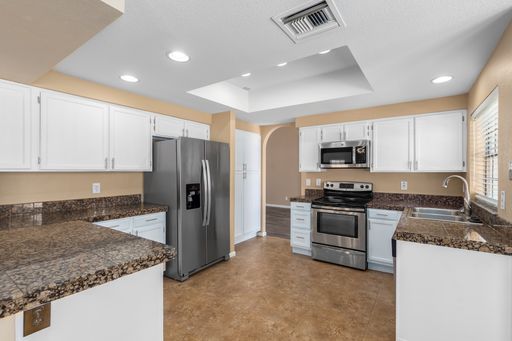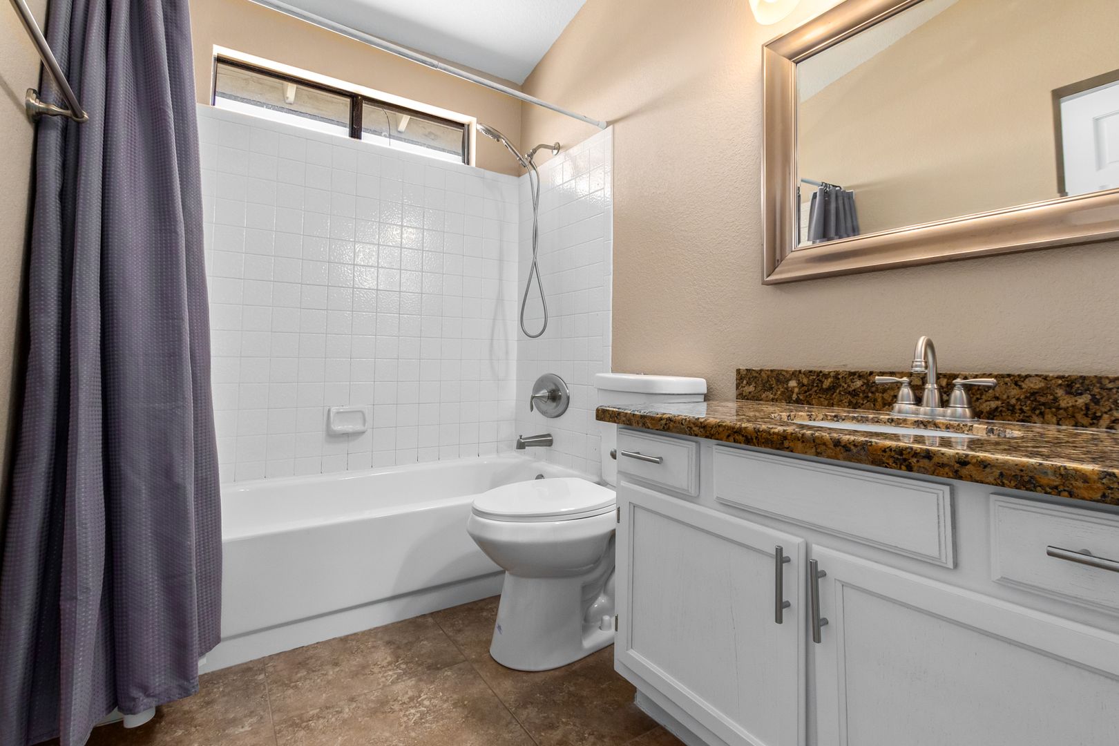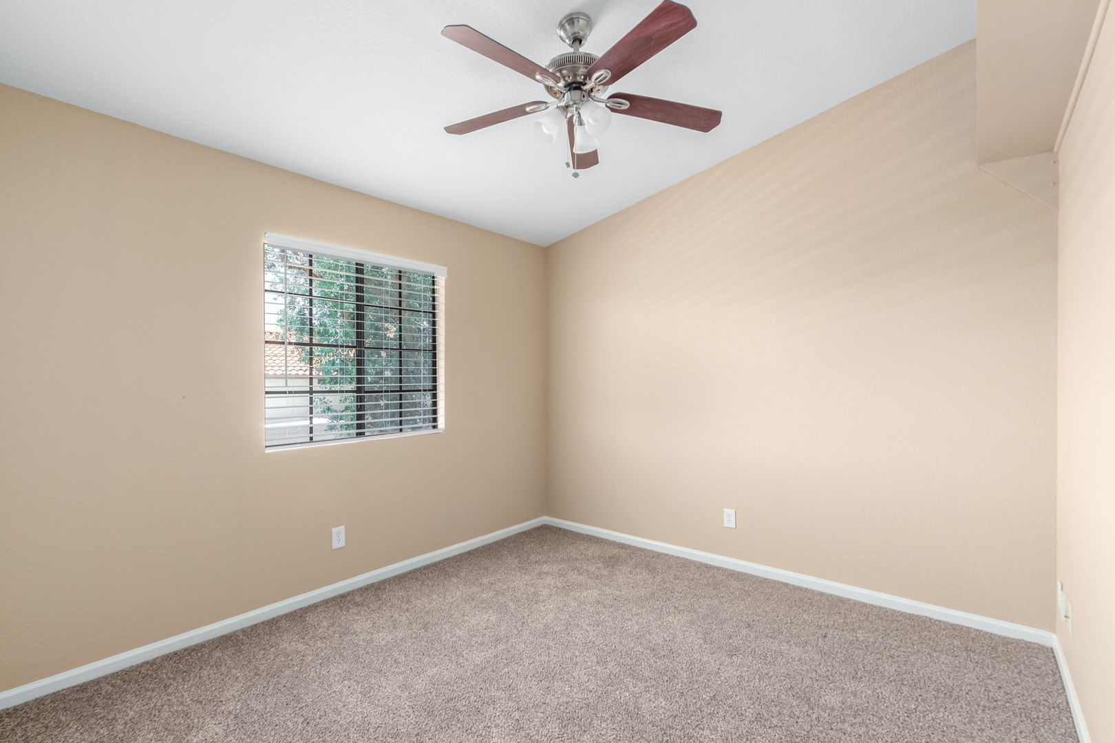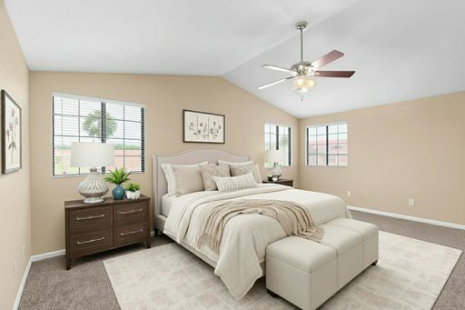 Located in upscale community, this 4 bedroom two-story home boasts 4 bedrooms upstairs, a convenient office on the first floor, and plenty of space for all. As you enter, you'll be greeted by cathedral style vaulted ceilings with updated fans and fixtures. The formal dining and living room are perfect for entertaining. Granite countertops in kitchen with stainless steel appliances and newly refinished, white cabinets. Stunning fireplace in spacious family room. 1/2 bath downstairs with granite counter vanity located right next to the office space. Upstairs, you'll discover the bedrooms and a small loft area overlooking the living room. Large master bedroom with walk-in closet and full master bath including custom tile walk-in shower, large tub, and dual sinks. Dual sinks with granite countertops. Tile and glass door walk-in shower and separate tub. 3 guest bedrooms are all generous in size. Located in golf course community with additional amenities including community pool and workout facility. 3 car garage with clean desert landscaping in front and back. Sparkling swimming pool with POOL SERVICE INCLUDED!