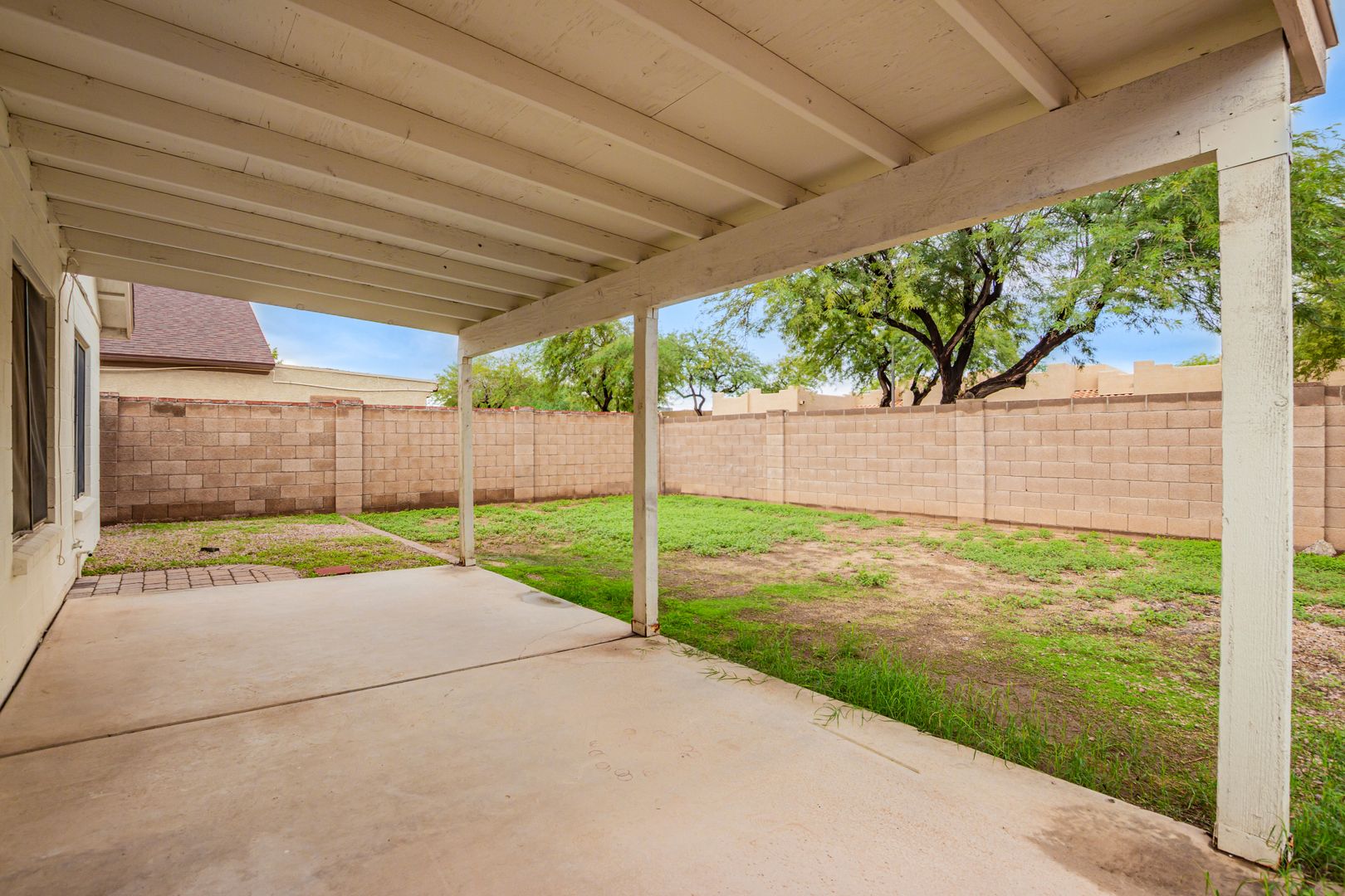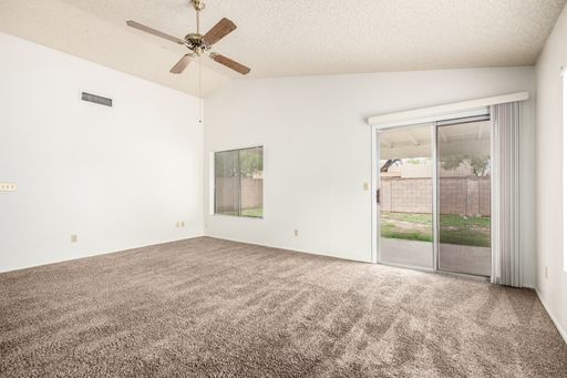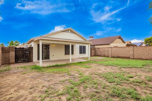 This charming 3-bedroom, 2-bath home offers comfort, convenience, and a great location—just minutes from the 101 freeway, Westgate, parks, shopping, dining, and more! Perfect for individuals or families stationed at Luke Air Force Base, only 5 miles away. Enjoy the peaceful atmosphere of this quiet community situated next to the Country Meadows Golf Course. The home features an open floor plan with a spacious kitchen offering plenty of cabinet and counter space, plus a formal dining area—perfect for entertaining. The split master bedroom includes a full en-suite bath and walk-in closet. Relax in your private backyard with a covered patio and easy-care landscaping in both the front and back yards. This home combines functionality and charm in a location that truly has it all!