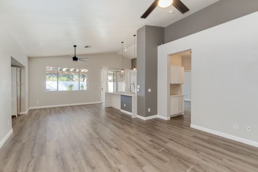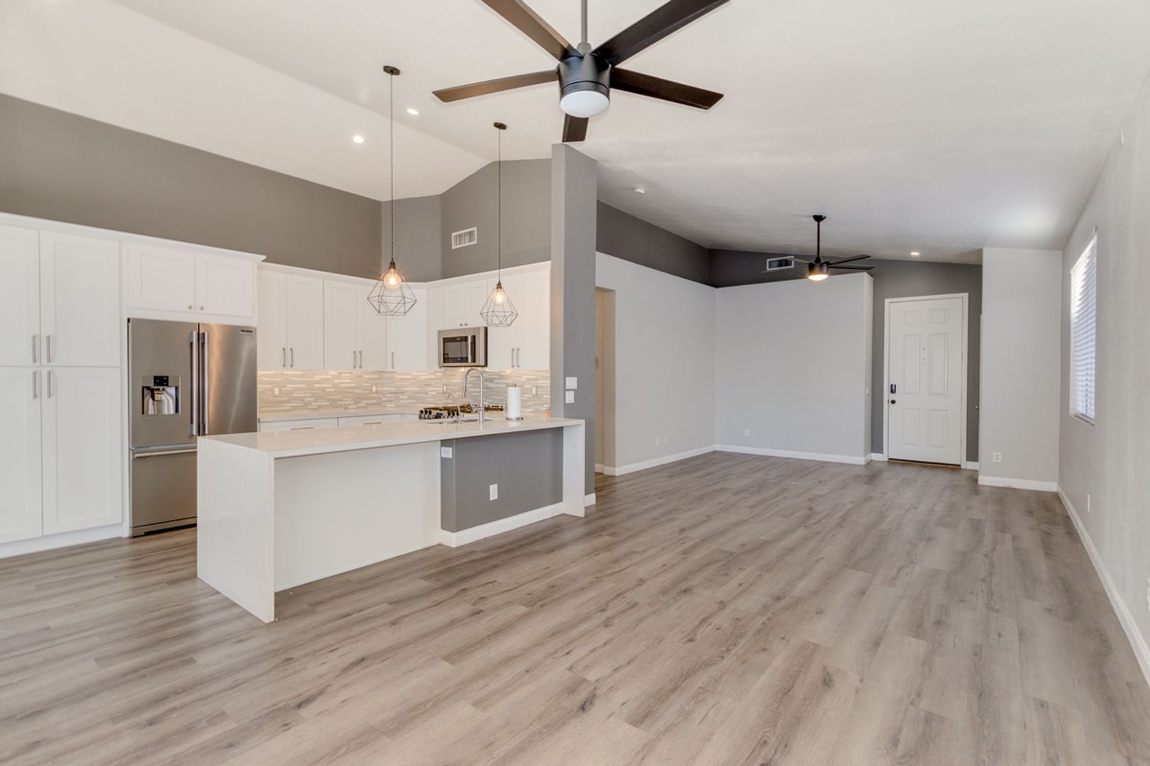 GORGEOUS INSIDE AND OUT! This beautifully remodeled 3 bedroom 2 bathroom home is located just minutes away from Downtown Chandler, the Chandler Mall, and tons of dining/shopping/entertainment options! Open living space with vaulted ceilings. The gorgeous white kitchen offers a breakfast room, tons of cabinet/counter space, stainless steel appliances and a breakfast bar. Inside the master bedroom you will find a private exit, full bath w/ double sinks, and large walk in tile shower. The backyard features a covered patio w/ paved sitting area, fire-pit, low maintenance landscaping, and a sparkling pool. Pool service included in rent.
