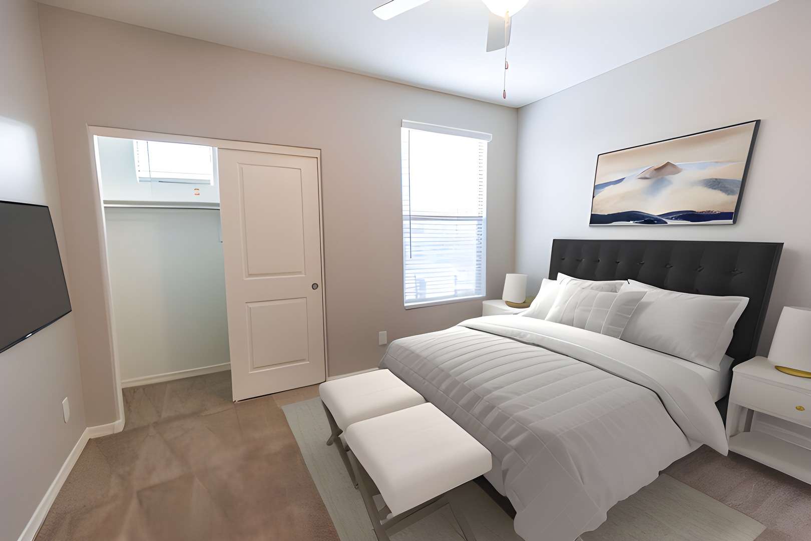 Lyra Residences is an innovative luxury town home rental community comprised of two-story smart homes. Situated in the ever popular Arcadia area of Phoenix you are minutes from all your favorite restaurants and activities. These smart homes with private backyards offer you everything you want in the location you want to live. The three bedroom homes all have private backyards, two car garages, two car driveways, large laundry rooms with full size washer and dryer. High speed internet (up to 1000mbs/s), keyless door entry and doorbell camera, smart climate control for additional $90/mo. The community is located minutes from Scottsdale, Tempe, Paradise Valley, Sky Harbor and Downtown Phoenix. W/S/T only $80/mo! *Photos and matterport are of a similar unit. Floorplan may be flipped.