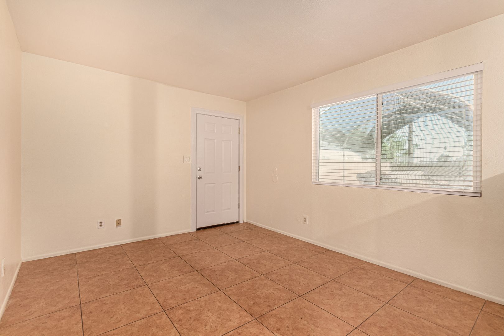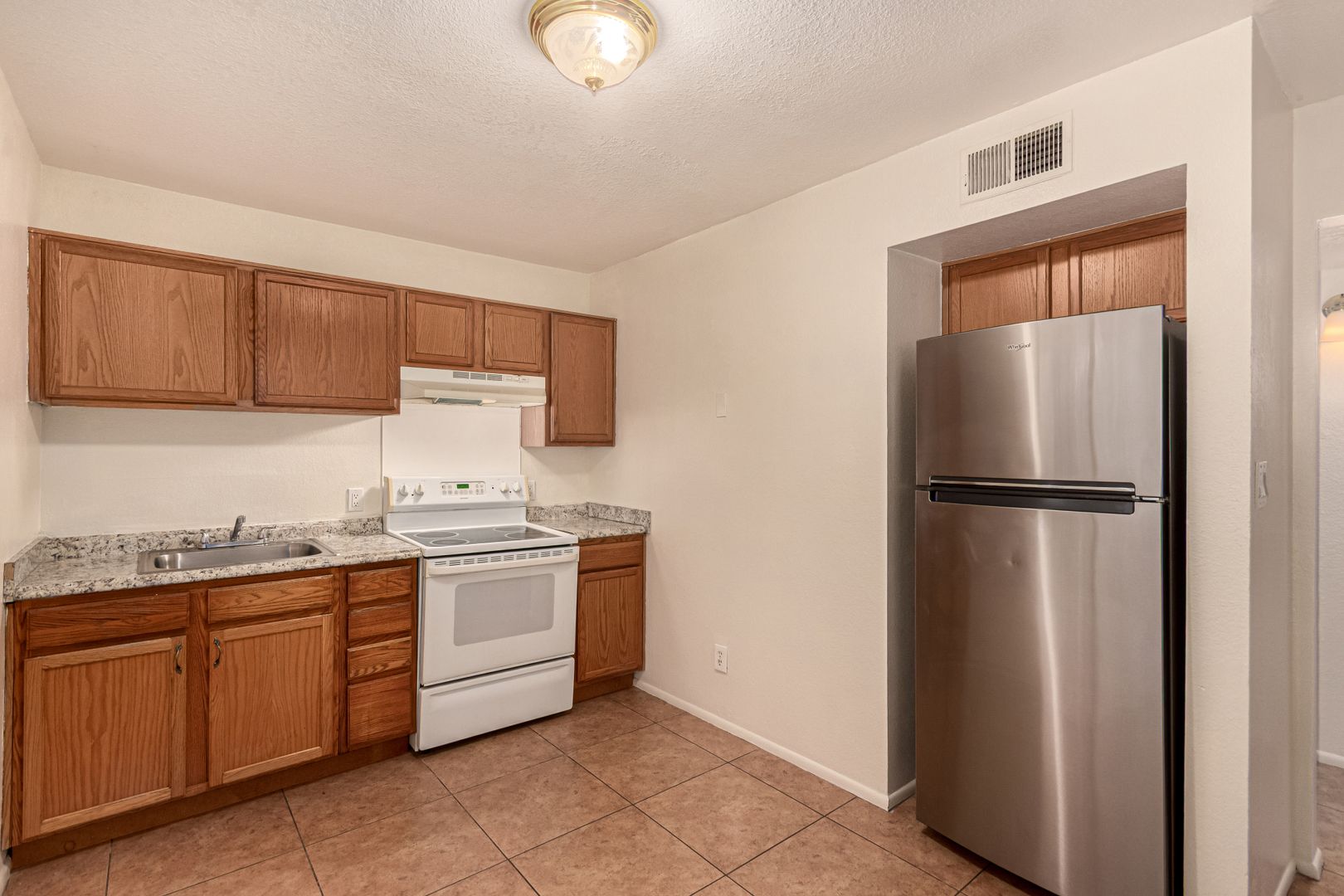 Enjoy comfort and convenience in this updated 2-bedroom, 1-bathroom ground-floor apartment ideally situated between Downtown Phoenix and Midtown. You’re just 1.5 miles to the Valley Metro Light Rail with quick access to I-10 and SR-51 for easy commuting. Inside, fresh paint and tile flooring create a clean, inviting feel. The kitchen features warm wood cabinetry, granite-look countertops, tile flooring, a white electric range with vent hood, and a stainless-steel refrigerator—a practical layout with plenty of storage and prep space. The home also features a full bathroom with tiled shower and glass enclosure. Water, sewer, and trash are included in the monthly rent, and the apartment comes with one assigned parking space, with additional street parking available for residents and guests.