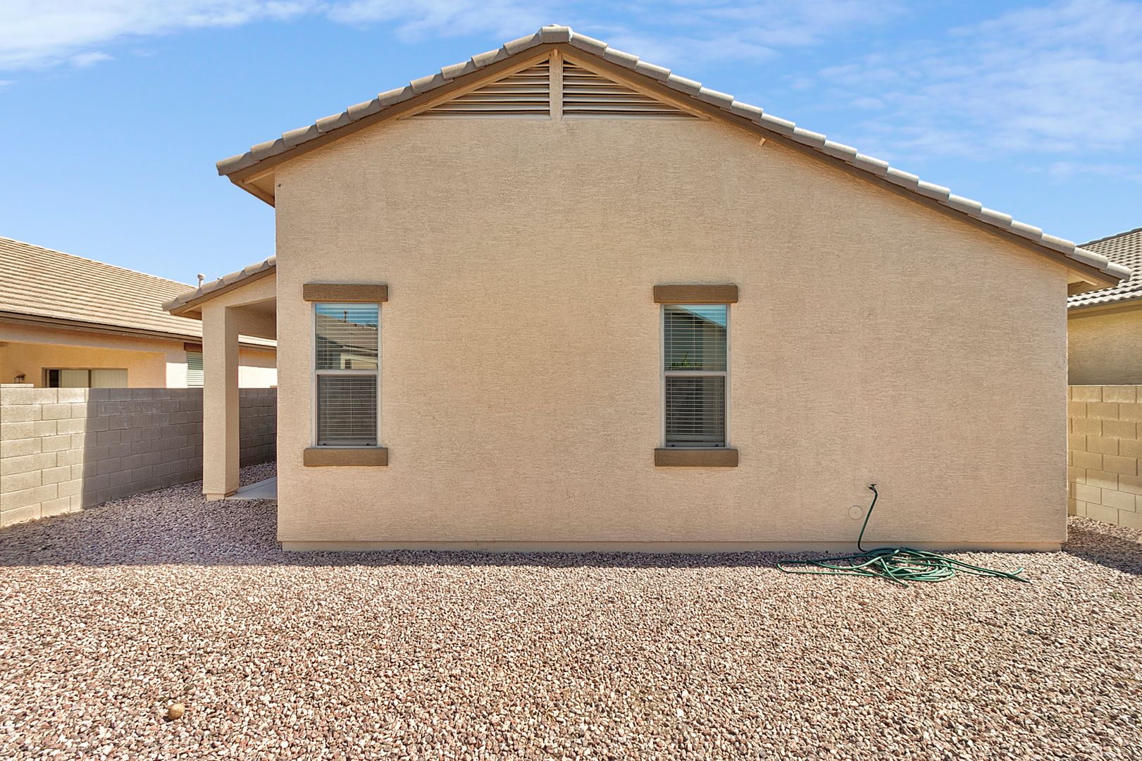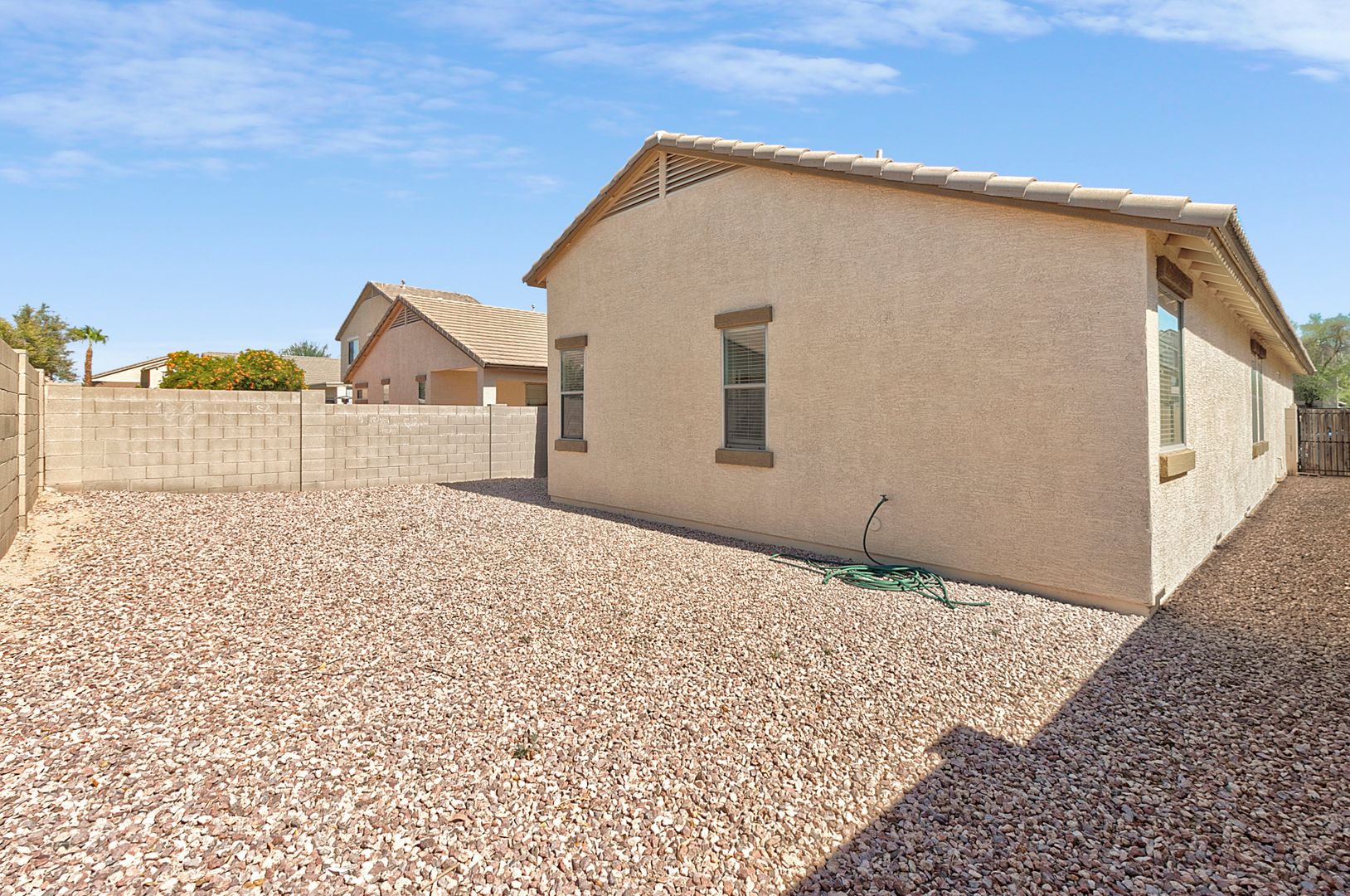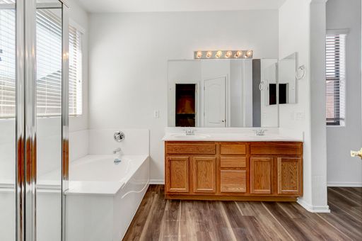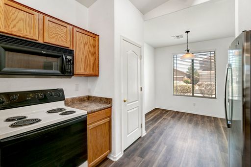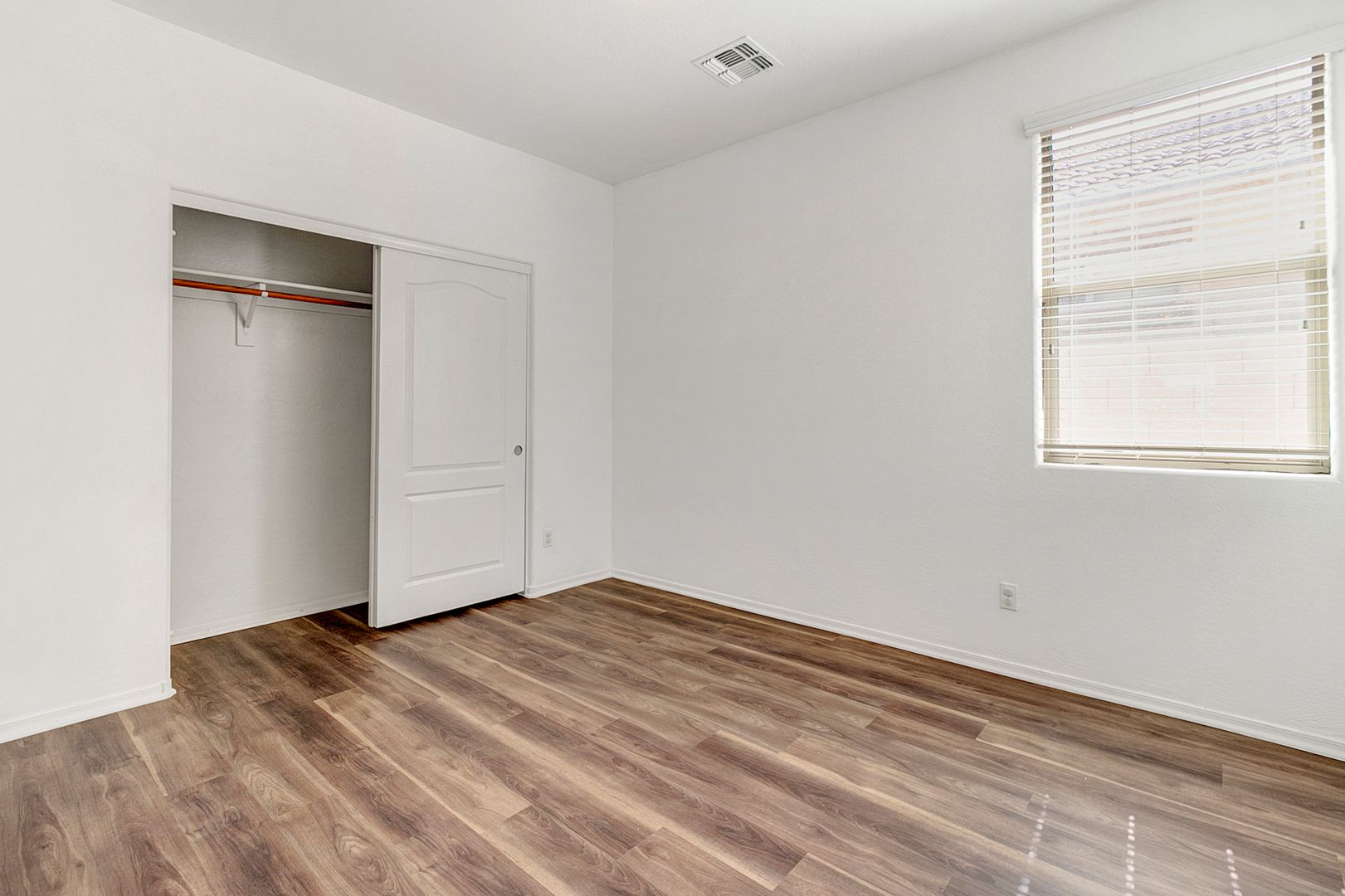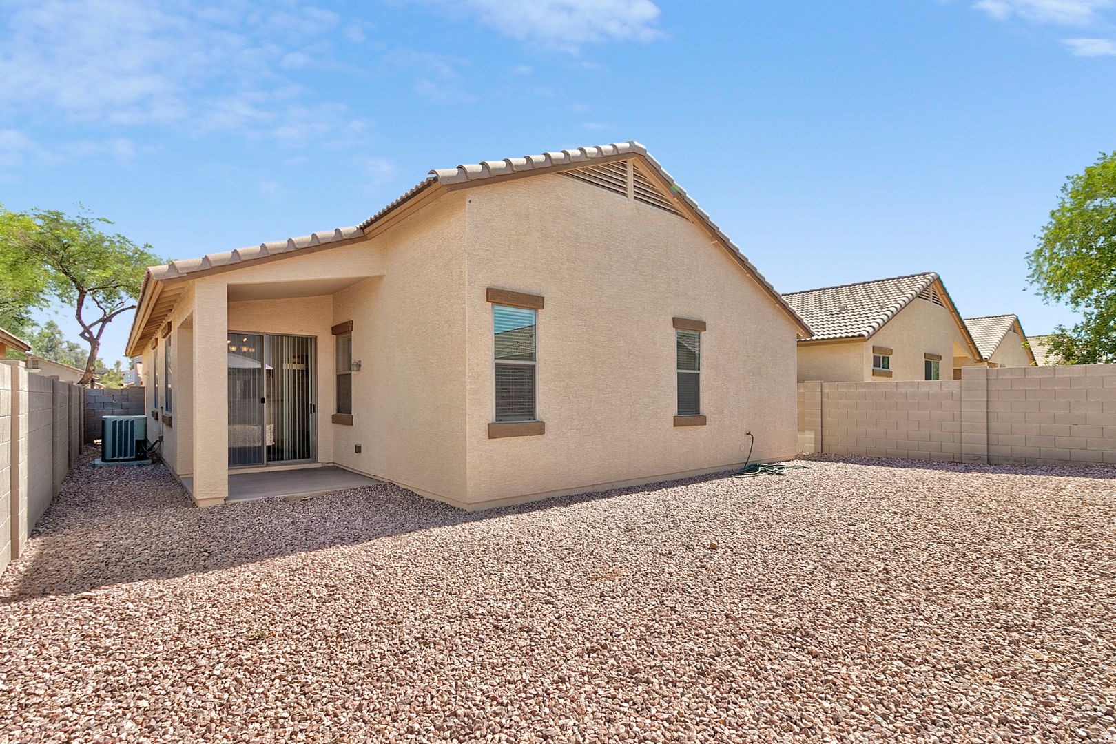Discover this charming 3-bedroom, 2-bathroom home featuring a bright, open great room floor plan perfect for modern living. The spacious kitchen includes all appliances, a pantry, breakfast bar, and a cozy dining nook. The primary suite offers a relaxing retreat with dual sinks, a separate tub and shower, and a generous walk-in closet. Additional highlights include newer vinyl flooring throughout, wood blinds, a large laundry room, and a 2-car garage. Ideally located near shopping, dining, and the Surprise baseball stadium, this home blends comfort and convenience in one desirable package!