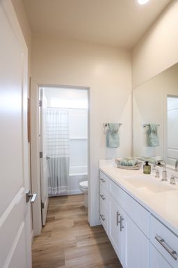 The stunning luxury vinyl plank flooring brings a touch of modern and warmth throughout the main living spaces. Each kitchen boasts quartz countertops, ample counter and cabinet space, and a spacious kitchen island perfect for hosting and gathering. Upstairs you'll find a large loft space which can be used efficiently to suit your needs - whether you desire a comfy lounge area, a children's play room or a family game room.. The options are endless! Enjoy the privacy of your very own enclosed yard upgraded with artificial turf. For only $95 a month, enjoy benefits including landscaping service for front and backyards, pest control service, and smart home technology: keyless entry, smart thermostat, door sensors, and smart mailboxes. The community also includes a pavilion and a private dog park for your furry friends.