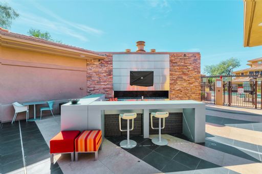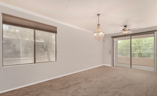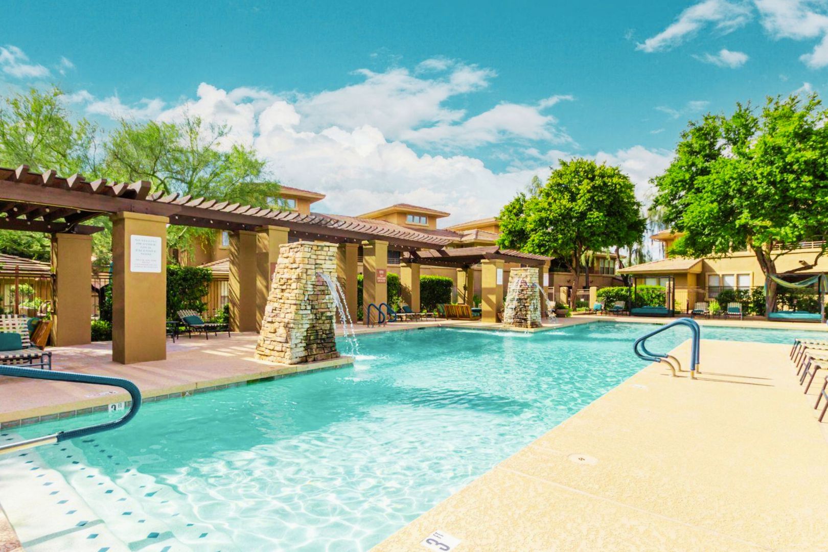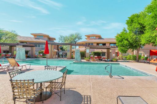 Welcome to the largest floor plan in the community, designed for function and comfort. It features three full bedrooms, including an oversized primary suite with an ensuite bathroom. The kitchen and family room flow seamlessly into the outdoor patio with sparkling pool views. Available as an unfurnished rental with a minimum 12-month lease, this home is ideal for those seeking long-term stability. Parking is a breeze with one traditional garage space plus a covered carport. Just steps away, you'll enjoy access to the clubhouse, fitness center, heated pool, spa, and social lounge within your gated community at the Edge. This location is all about walkability. Grab a coffee at Starbucks, stroll to dining and grocery stores, let the kids enjoy nearby playgrounds, or look forward to the upcoming Grayhawk dog park. With Scottsdale's best shopping, dining, and entertainment just a short drive away, you'll never run out of things to do.