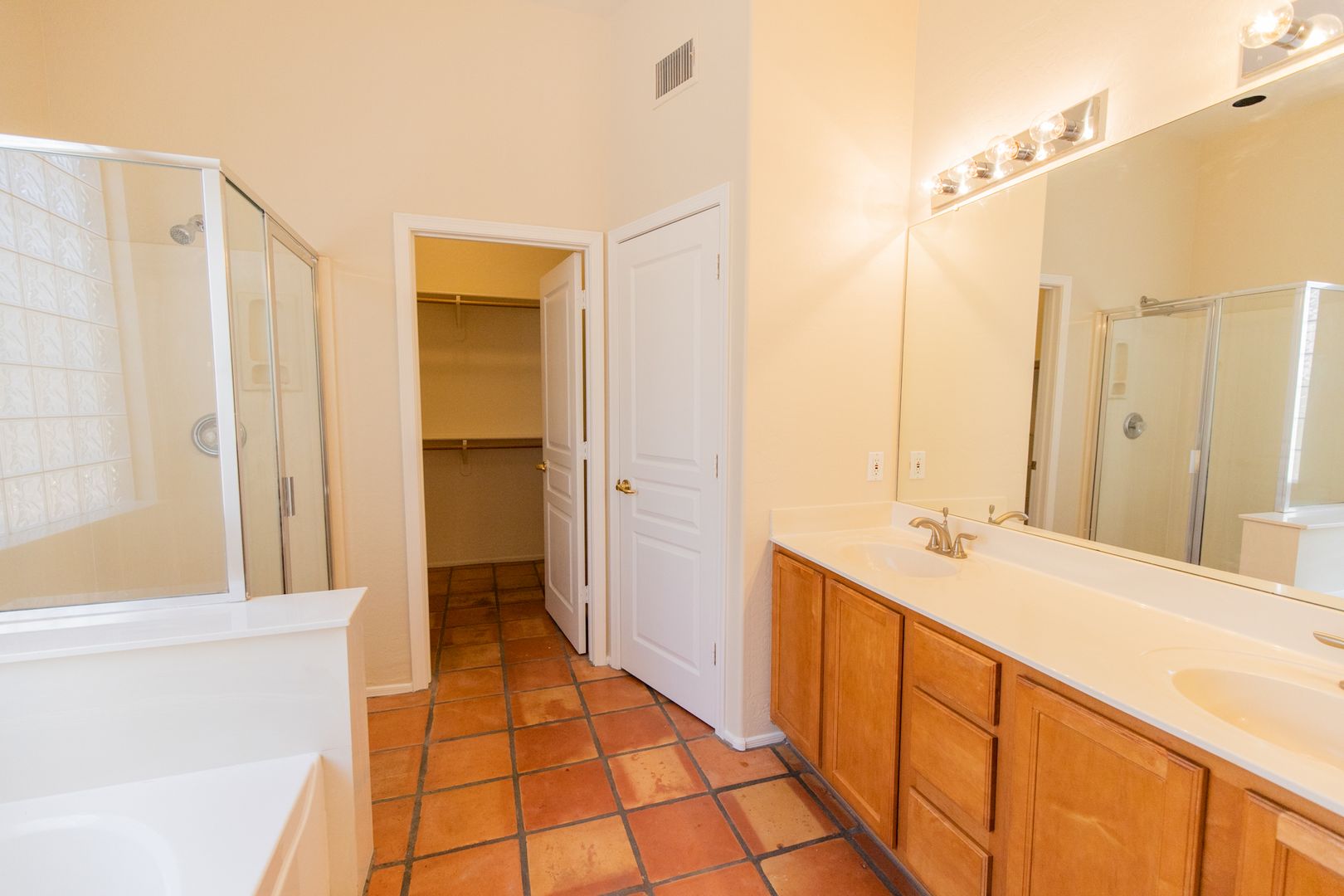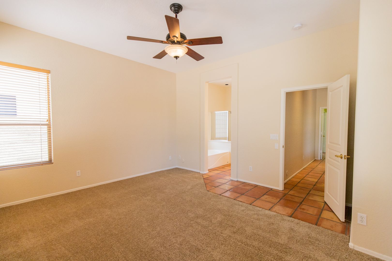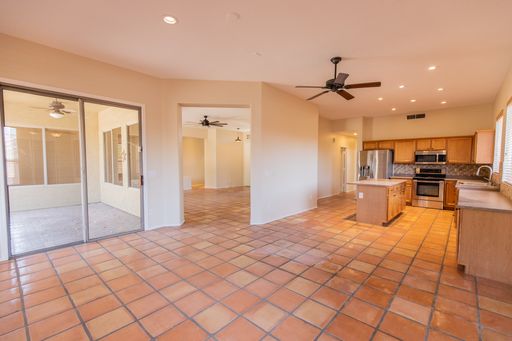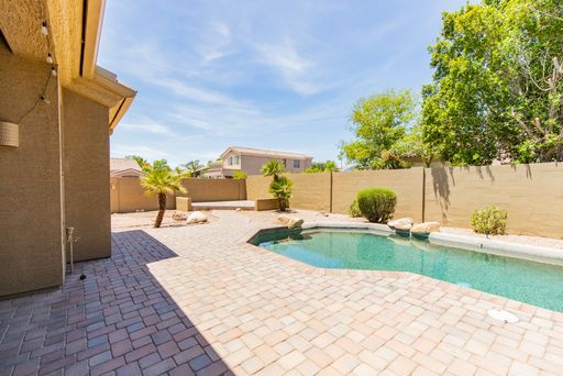 This single story 4 bedroom home with Santa Fe flare sits on a private north south facing corner lot nearby grocery stores, restaurants, shopping and entertainment! Split floorplan with separate living and family rooms. Secluded bonus room can be turned into mini-theatre, game room, office, or just a hang out room for the kids! Backyard features extended patio, sparkling pool, and elevated area perfect for a fire pit and/or sun loungers.