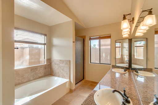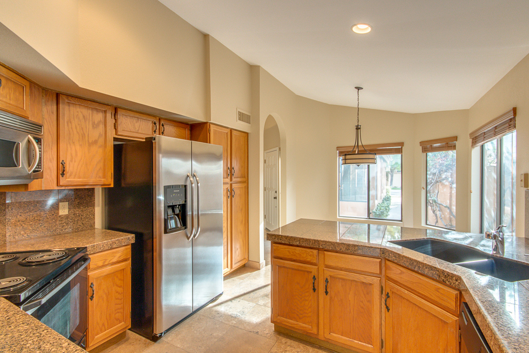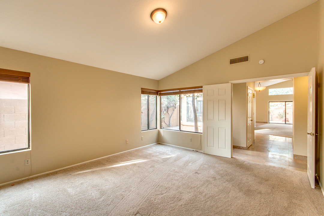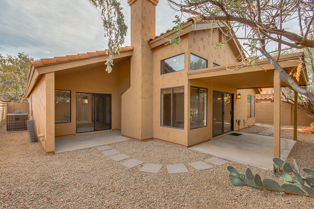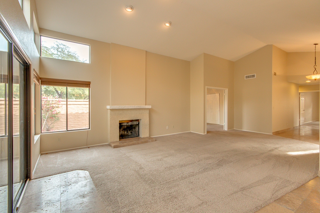 Beautiful 3 bedroom 2 bath home located in quiet cul -de-sac at Sweetwater Ranch Manor.community has a heated pool and spa, walking/biking path. Great location in scottsdale just off 101! Near by mayo clinic, and university, and basis scottsdale. This home features a large great room with a fireplace, vaulted ceilings with wood blinds. Plus ceiling fans throughout formal dining room and cozy kitchen with breakfast room and breakfast bar. granite countertops with plenty of storage. Updated with 18x18 travertine floors throughout plus all bathrooms. Beautiful carpets. Gorgeous master suite features a full master bath includes double sinks and a separate shower & tub, two closets the 3rd bedroom access to a private patio. HVAC system as of April 2023 to help keep you cool in the Arizona heat! 2 car garage also includes an EV charger. Front yard and backyard landscaping included in the rent.