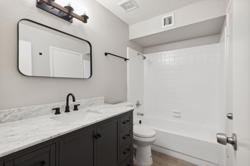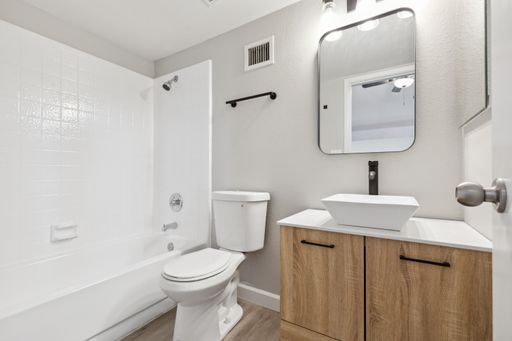 Experience comfort and style just minutes from Downtown Mesa in this beautifully updated apartment! Featuring modern wood-look flooring and fresh neutral paint throughout, this inviting unit offers seamless design and functionality. The spacious living room showcases vaulted ceilings and a cozy corner fireplace, flowing effortlessly into the dining area. The upgraded kitchen includes white shaker cabinets, sleek hardware, and stainless steel appliances. Both generously sized bedrooms offer ample closet space and private en-suite bathrooms. Relax in your own enclosed patio or explore the lush grassy common areas, perfect for pets or play. With a community pool just steps away and easy access to the Oakland A’s spring training complex, shopping, and freeways—this home is ideal for anyone seeking simplicity, convenience, and lifestyle.