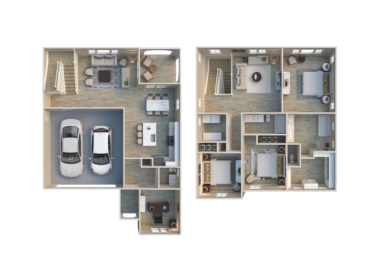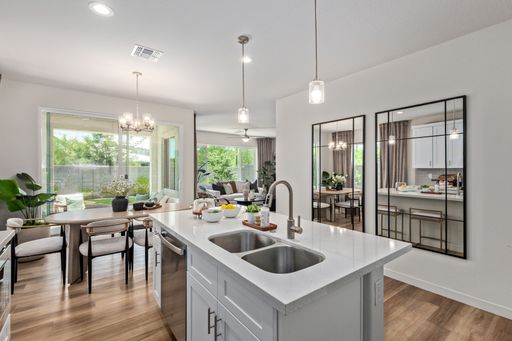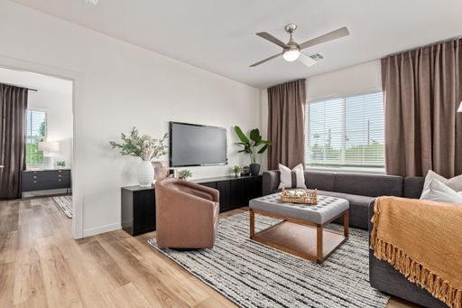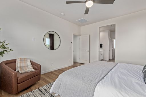 The stunning luxury vinyl plank flooring brings a touch of modern and warmth throughout the main living spaces. Each kitchen boasts quartz countertops, ample counter and cabinet space, and a spacious kitchen island perfect for hosting and gathering. Upstairs you'll find a large loft space which can be used efficiently to suit your needs - whether you desire a comfy lounge area, a children's play room or a family game room.. The options are endless! Enjoy the privacy of your very own enclosed yard upgraded with artificial turf. For only $95 a month, enjoy benefits including landscaping service for front and backyards, pest control service, and smart home technology: keyless entry, smart thermostat, door sensors, and smart mailboxes. The community also includes a pavilion and a private dog park for your furry friends.