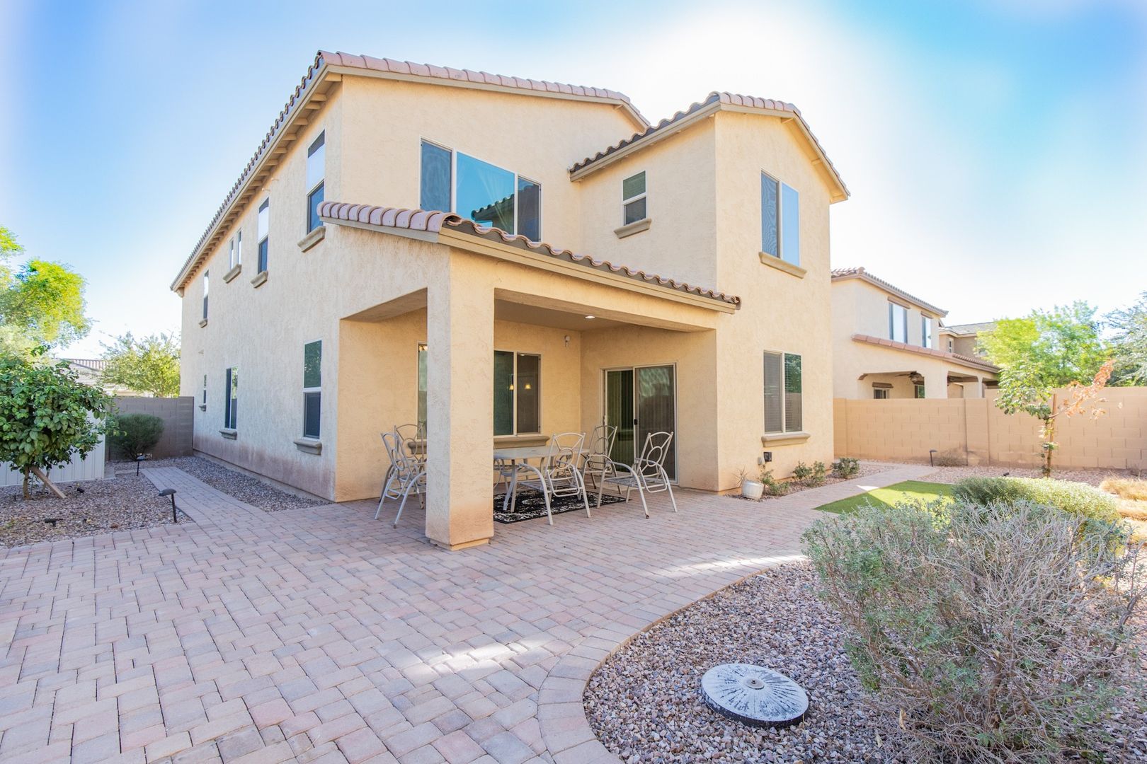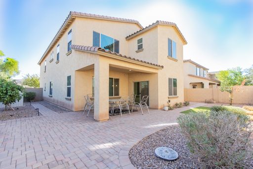 Come and see this wonderful 5 bed, 3 bath property in Gilbert! Featuring low maintenance landscaping, a 2 car garage, and much more, you simply won't believe your eyes! Inside you will find formal dining and living areas, a den perfect for an office, a cozy loft, balcony, and designer paint throughout. The luxurious kitchen offers staggered cabinetry with crown molding, a pantry, granite countertops, matching appliances, pendant lighting, and an island complete with a breakfast bar. The grandiose master bedroom boasts a sitting area, walk-in closet, and a full bath with double sinks, not to mention separate tub and shower. The lovely backyard, with its covered patio, is perfect for spending quality time with friends and loved ones!